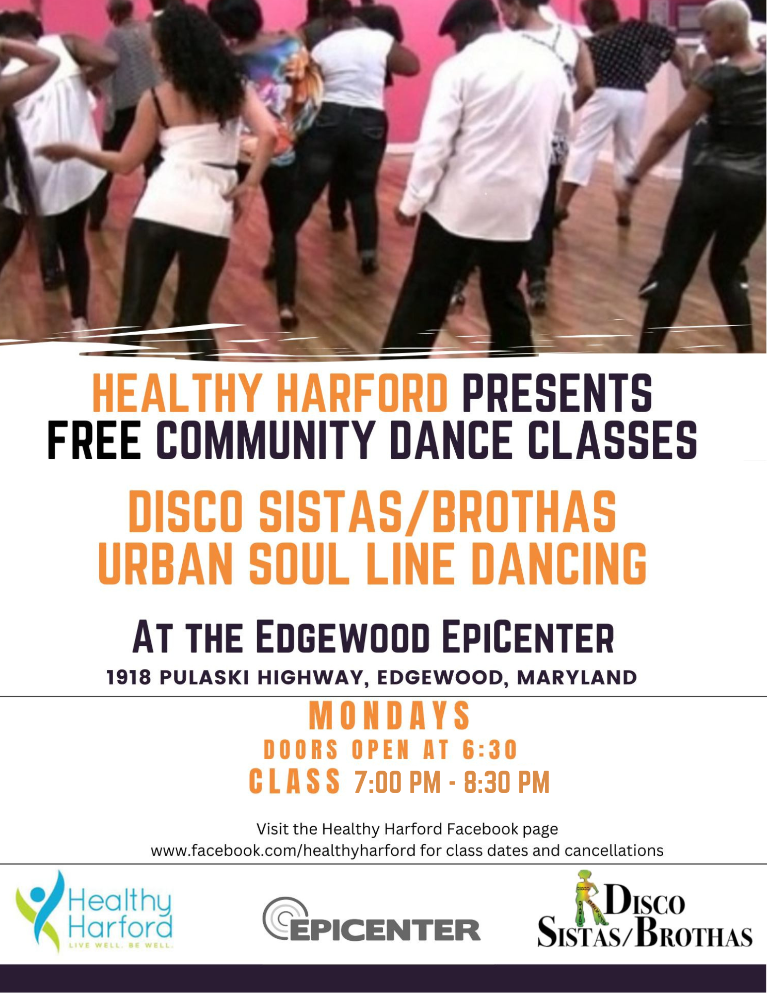 Edgewood EpiCenter 1918 Pulaski Hwy, Edgewood, MDNew Year, New You! Come get your groove on at the Edgewood EpiCenter with Free Urban Line Dancing with the Disco Sistas and Brothas! Class open to anyone age 16